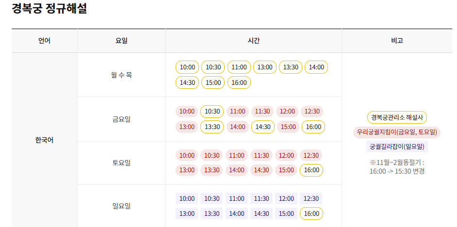 대신 입구 근처에서 낮 시간 해설 정보를 확인할 수 있어요.